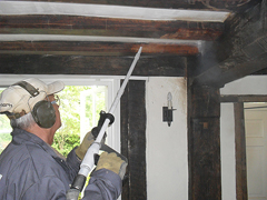 Dry ice blasting is Environmentally Friendly. The Co2 is a by product of the petro-chemical industry. Co2 is not produced separately, it is always a by product of other industrial processes. Beam cleaning in old properties can be undertaken quickly and efficiently without the occupants needing to move out while the work takes place. Once again the reason for this is because there is no grit, water, chemicals or solvents involved.